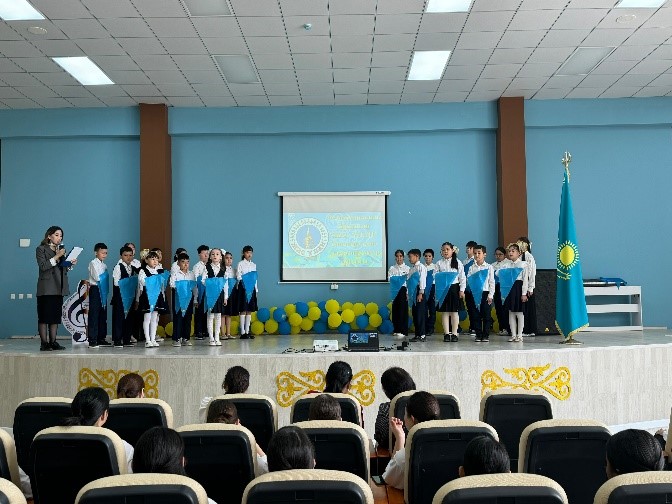 Іс - шара барысында ұйымға қабылданған оқушыларға көк туымыздың түсін бейнелейтін көгілдір галстук пен төсбелгілер табысталды.